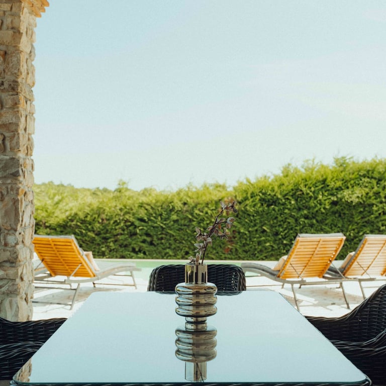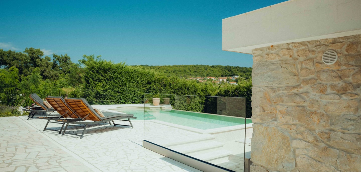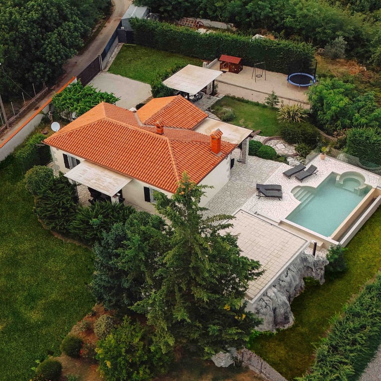 Sie liegt erhöht in einem ruhigen Teil der Stadt Labin auf einem eigenen Grundstück von 1.500 m², von dem aus sich ein einzigartiger Blick auf die kultivierten Felder und das malerische Labin bietet. Auf dem harmonisch gestalteten und gepflegten Grundstück stehen den Gästen der Villa ein überdachter Parkplatz für zwei Fahrzeuge, ein 38 m² großer Außen-Salzwasserpool mit römischem Einstieg, eine istrische Konoba, drei überdachte Terrassen mit Sitz- und Essgarnituren, ein Grillkamin, ein Kinderspielplatz und ein Boccia-Platz zur Verfügung.