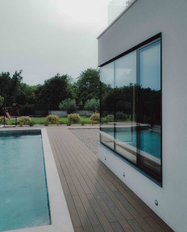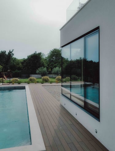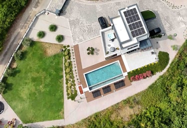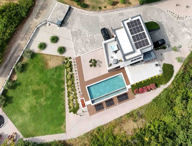 Auch im Außenbereich überzeugt die Villa auf ganzer Linie. Ein 60 m² großer Infinity-Pool mit zehn Liegestühlen, eine überdachte Terrasse mit Esstisch, eine gemütliche Lounge-Ecke sowie ein Holzkohle-Smoker bieten zahlreiche Möglichkeiten für Genuss und Erholung. Für Kinder gibt es einen Spielplatz mit Trampolin, Schaukeln und Spielhaus. Das vollständig umzäunte Grundstück verfügt zudem über sechs private Parkplätze.