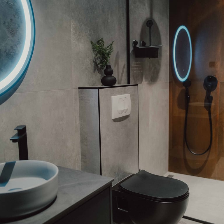 Insgesamt stehen fünf Schlafzimmer mit eigenen Badezimmern zur Verfügung. Zwei Zimmer sind mit Doppelbetten und luxuriösen Badewannen ausgestattet, drei weitere verfügen über Einzelbetten und moderne Duschen. Zusätzlich gibt es ein Einzelbett im Souterrain sowie ein separates Gäste-WC.