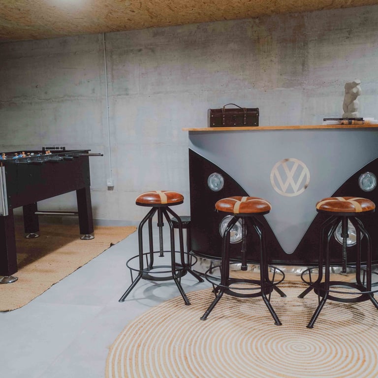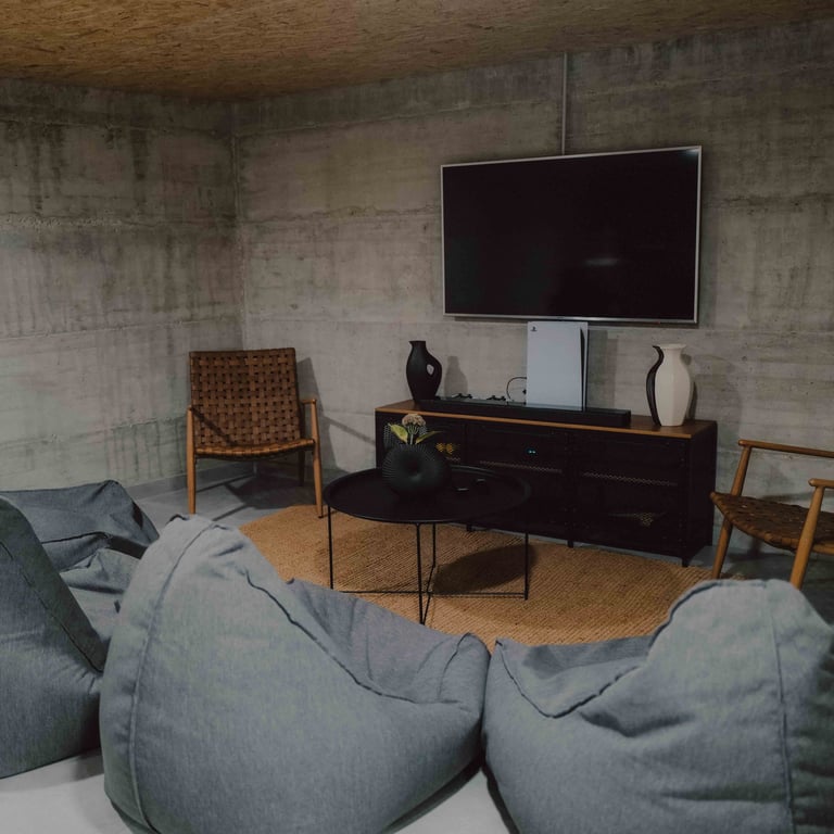 Der Wellness- und Freizeitbereich lässt keine Wünsche offen: Eine finnische Sauna mit Panoramablick, eine Terrasse mit Whirlpool und Outdoor-Bett sowie ein Spielzimmer mit PlayStation, Tischtennis, Tischfußball und Darts sorgen für Entspannung und Unterhaltung. Ergänzt wird das Angebot durch einen Fitnessraum und einen Weinkeller.