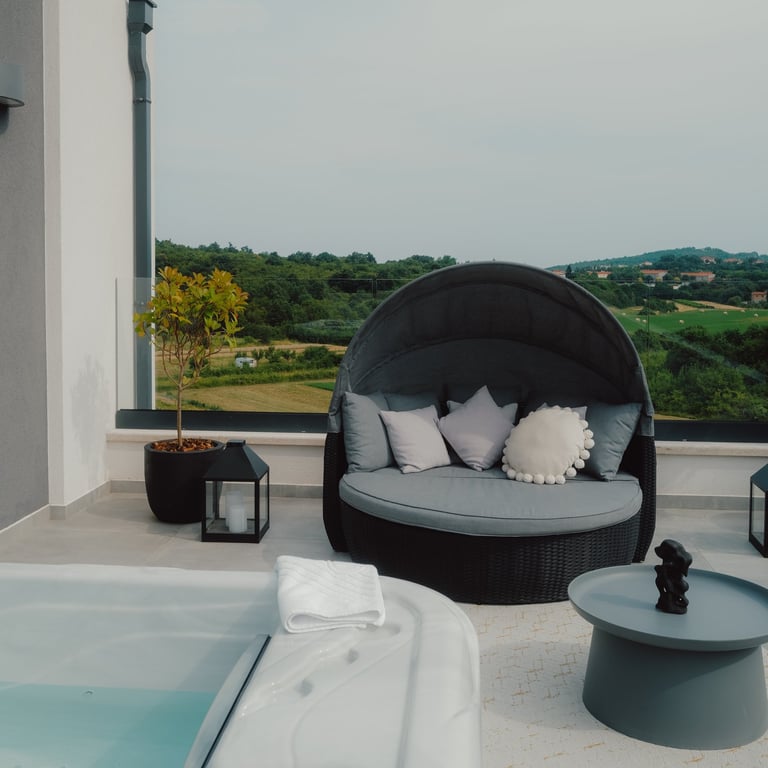 Unsere Ferienvilla in Labin, Kroatien, bietet einen unvergesslichen Urlaub mit eigenem Pool, Sauna, Jacuzzi und fünf Schlafzimmern mit eigenem Bad.